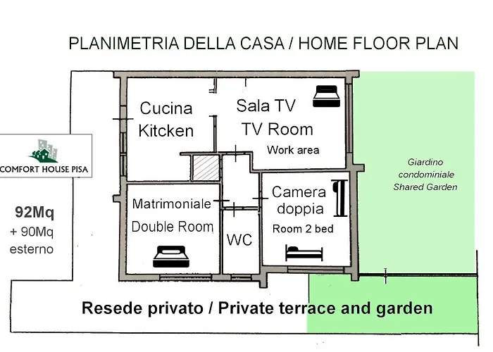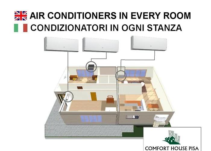 Comfort House Pisa features a balcony and a sitting area complete with an iron and ironing board, and climate control, as well as a flat-screen TV with satellite channels. The property is also furnished with a sofa and a work desk. A highlight of the accommodation for guests is the presence of a hairdryer, shower caps, and towels in the bathroom. Furthermore, a bidet, a separate toilet, and a shower is available.